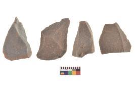 | Description / विवरण | There are n-4 of utilized flake cores. There are multidirectional irregular dominant scar pattern on both dorsal and ventral face of the cores. |