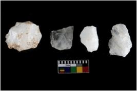 | Description / विवरण | Specimen of cores with weathered cortex and several broad fluted marks. Some of them are tapering at one end. |