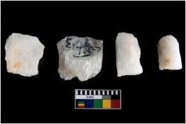 | Description / विवरण | Specimen of cores with weathered cortex and several broad fluted marks. Some of them are tapering at one end. |