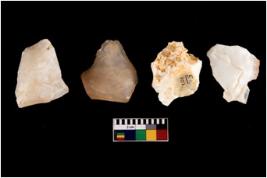 | Description / विवरण | There are n-4 intact flake cores. There are multi directional irregular scar pattern on both dorsal and ventral face of the flake cores. |