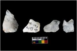 | Description / विवरण | Specimen of cores with weathered cortex and several broad fluted marks. Some of them are tapering at one end. |