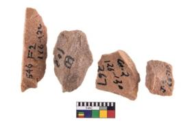 | Description / विवरण | It made up of a short flakes with sides trimmed. It rained pebbly cortex on one side and irregular thin edge on the other. |
