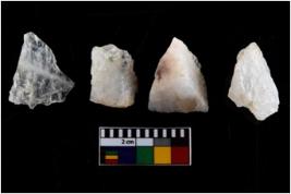 | Description / विवरण | There are n-4 of intact utilized flakes made up of Quartz. Some of them have bulge of percussion and some are flat flakes. |
