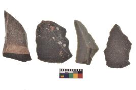 | Description / विवरण | There are n-4 of utilized flake cores. There are multidirectional irregular dominant scar pattern on both dorsal and ventral face of the cores. |