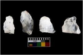 | Description / विवरण | Specimen of cores with weathered cortex and several broad fluted marks. Some of them are tapering at one end. |