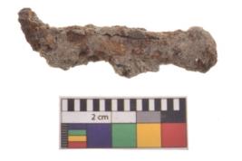 | Description / विवरण | Specimen with broken top and curved bottom. It is highly corroded. |