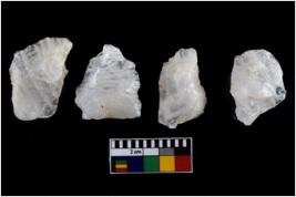 | Description / विवरण | There are n-4 of intact utilized flakes made up of Quartz. Some of them have bulge of percussion and some are flat flakes. |