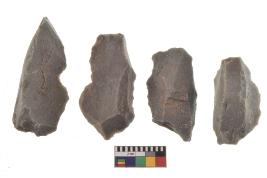 | Description / विवरण | There are n-4 of utilized flake cores. There are multidirectional irregular dominant scar pattern on both dorsal and ventral face of the cores. |