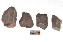 | Description / विवरण | There are n-4 of utilized flake cores. There are multidirectional irregular dominant scar pattern on both dorsal and ventral face of the cores. |