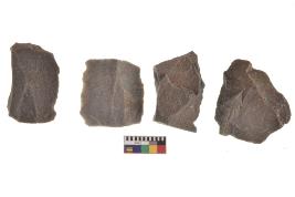 | Description / विवरण | There are n-4 of utilized flake cores. There are multidirectional irregular dominant scar pattern on both dorsal and ventral face of the cores. |