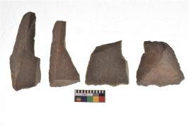 | Description / विवरण | There are n-4 of utilized flake cores. There are multidirectional irregular dominant scar pattern on both dorsal and ventral face of the cores. |