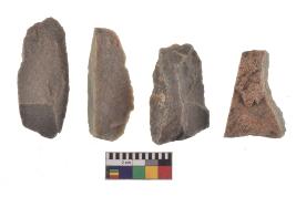 | Description / विवरण | There are n-4 of utilized flake cores. There are multidirectional irregular dominant scar pattern on both dorsal and ventral face of the cores. |