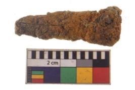 | Description / विवरण | A highly corroded specimen of a flat nail. |