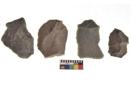 | Description / विवरण | There are n-4 of utilized flake cores. There are multidirectional irregular dominant scar pattern on both dorsal and ventral face of the cores. |