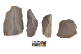 | Description / विवरण | There are n-4 of utilized flake cores. There are multidirectional irregular dominant scar pattern on both dorsal and ventral face of the cores. |