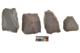 | Description / विवरण | There are n-4 of utilized flake cores. There are multidirectional irregular dominant scar pattern on both dorsal and ventral face of the cores. |