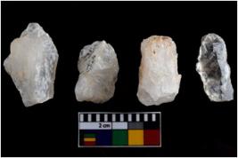 | Description / विवरण | There are n-4 of intact utilized flakes made up of Quartz. Some of them have bulge of percussion and some are flat flakes. |