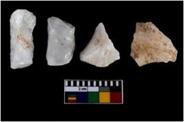 | Description / विवरण | There are n-4 of intact utilized flakes made up of Quartz. Some of them have bulge of percussion and some are flat flakes. |