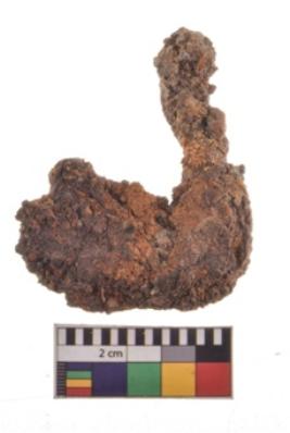 | Description / विवरण | Specimen is thick at one end and tapering on the other. It is highly corroded. |