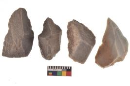 | Description / विवरण | There are n-4 of utilized flake cores. There are multidirectional irregular dominant scar pattern on both dorsal and ventral face of the cores. |