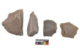 | Description / विवरण | There are n-4 of utilized flake cores. There are multidirectional irregular dominant scar pattern on both dorsal and ventral face of the cores. |