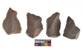| Description / विवरण | There are n-4 of utilized flake cores. There are multidirectional irregular dominant scar pattern on both dorsal and ventral face of the cores. |