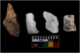 | Description / विवरण | There are n-4 of intact utilized flakes made up of Quartz. Some of them have bulge of percussion and some are flat flakes. |