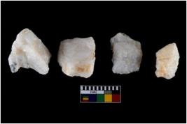 | Description / विवरण | There are n-4 of intact utilized flakes made up of Quartz. Some of them have bulge of percussion and some are flat flakes. |