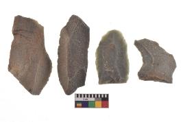 | Description / विवरण | There are n-4 of utilized flake cores. There are multidirectional irregular dominant scar pattern on both dorsal and ventral face of the cores. |