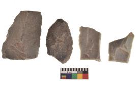 | Description / विवरण | There are n-4 of utilized flake cores. There are multidirectional irregular dominant scar pattern on both dorsal and ventral face of the cores. |