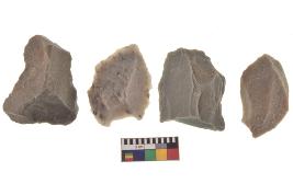 | Description / विवरण | There are n-4 of utilized flake cores. There are multidirectional irregular dominant scar pattern on both dorsal and ventral face of the cores. |