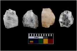 | Description / विवरण | There are n-4 of intact utilized flakes made up of Quartz. Some of them have bulge of percussion and some are flat flakes. |