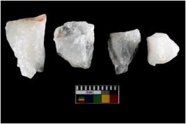 | Description / विवरण | Specimen of a cores with several broad fluted marks. Some are irregular in shape whereas some are tapering at one end. |