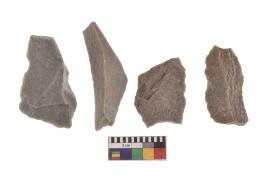 | Description / विवरण | There are n-4 of utilized flake cores. There are multidirectional irregular dominant scar pattern on both dorsal and ventral face of the cores. |