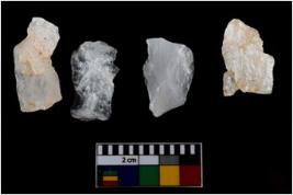 | Description / विवरण | There are n-4 of intact utilized flakes made up of Quartz. Some of them have bulge of percussion and some are flat flakes. |