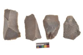 | Description / विवरण | There are n-4 of utilized flake cores. There are multidirectional irregular dominant scar pattern on both dorsal and ventral face of the cores. |