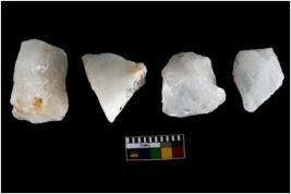 | Description / विवरण | Specimen of a cores with several broad fluted marks. Some are irregular in shape whereas some are tapering at one end. |