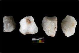 | Description / विवरण | Specimen of cores with weathered cortex and several broad fluted marks. Some of them are irregular in shape, whereas some are tapering at one end. |