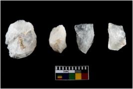 | Description / विवरण | Specimen of cores with weathered cortex and several broad fluted marks. Some of them are irregular in shape, whereas some are tapering at one end. |