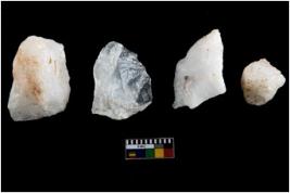 | Description / विवरण | Specimen of cores with weathered cortex and several broad fluted marks. Some of them are irregular in shape, whereas some are tapering at one end. |