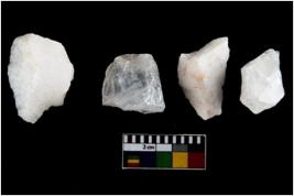 | Description / विवरण | Specimen of cores with weathered cortex and several broad fluted marks. Some of them are irregular in shape, whereas some are tapering at one end. |