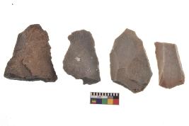 | Description / विवरण | There are n-4 of utilized flake cores. There are multidirectional irregular dominant scar pattern on both dorsal and ventral face of the cores. |