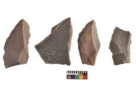 | Description / विवरण | There are n-4 of utilized flake cores. There are multidirectional irregular dominant scar pattern on both dorsal and ventral face of the cores. |