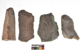| Description / विवरण | There are n-4 of utilized flake cores. There are multidirectional irregular dominant scar pattern on both dorsal and ventral face of the cores. |