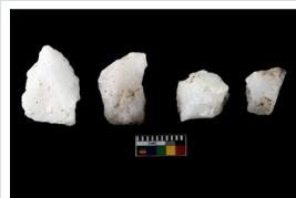 | Description / विवरण | Specimen of cores with weathered cortex and several broad fluted marks. Some of them are irregular in shape, whereas some are tapering at one end. |