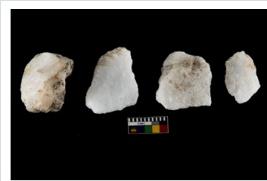 | Description / विवरण | Specimen of cores with weathered cortex and several broad fluted marks. Some of them are irregular in shape, whereas some are tapering at one end. |
