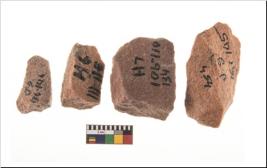 | Description / विवरण | A specimen of flake tool with prominent flaking marks. It made up of a short flakes with sides trimmed. It is rectangular in shaped. |