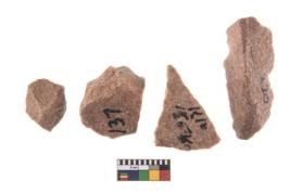 | Description / विवरण | A rectangular flake with wavy thick distal end and broken functional top. It reined pebbly cortex on one side and irregular thin edge on the other. |