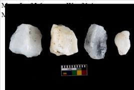 | Description / विवरण | Specimen of cores with weathered cortex and several broad fluted marks. Some of them are irregular in shape, whereas some are tapering at one end. |