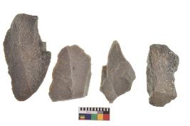 | Description / विवरण | There are n-4 of utilized flake cores. There are multidirectional irregular dominant scar pattern on both dorsal and ventral face of the cores. |
